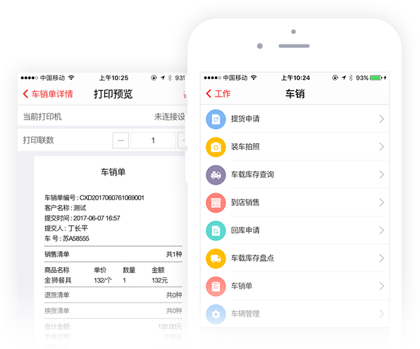 现场生成销售订单,蓝牙打印单据给客户签字,杜绝业务员拆