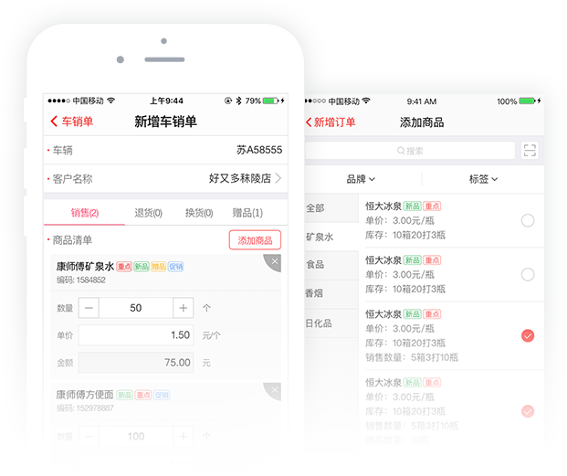 由手机下订单,系统内自动计算库存减少数,车载库存实时可