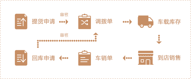 业务员从总库提货时提交申请,装车时拍照确认,到店销售直接